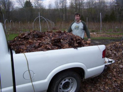 Hauling leaves from Jay's garden.