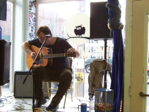 Jay tuning for his performance at Nightowl Records.