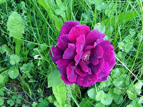 A single red rose in the rain.