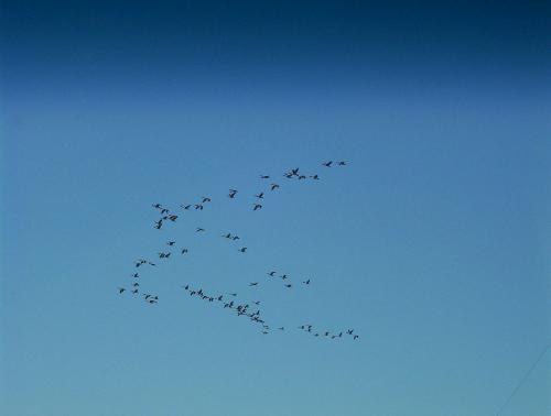 Geese in flight.