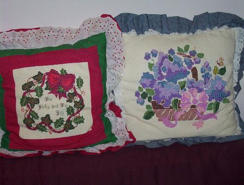 Pillows crossed stitched by my Mother.
