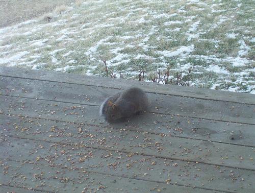 eating the birds leftovers.