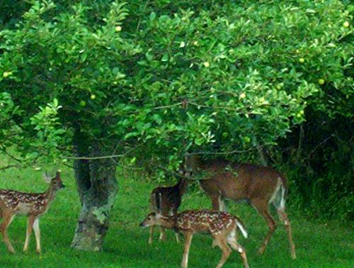 Mamma and her three babies. I think they like our apples.
