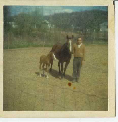 My Dad on the farm, about 1971, with Babe and her colt.