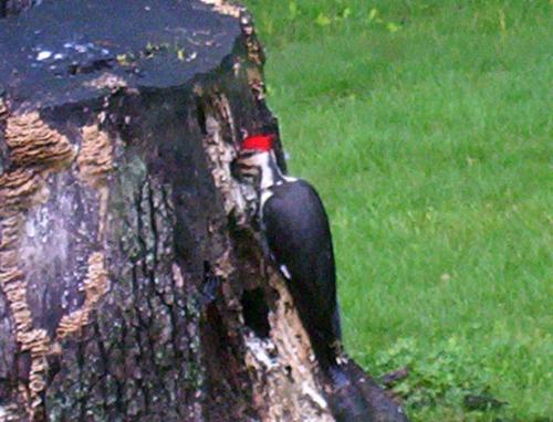 Woodpecker having a little feast. He has tore up this old tree stump in our front yard hunting ants. He made quite a mess of it.