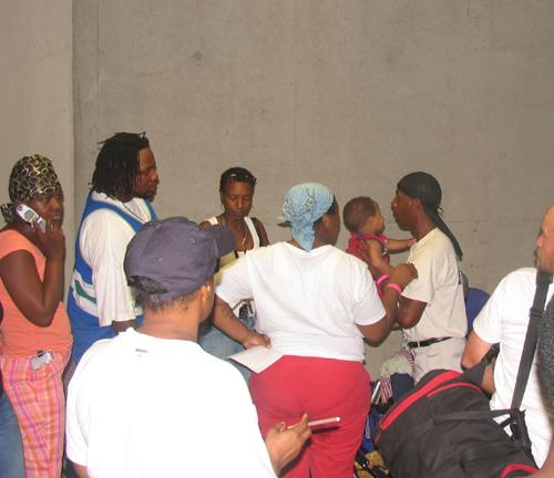 FAMILY MEMBERS FIND EACH OTHER AFTER ARIVING AT ONE OF THE RELIEF CENTERS