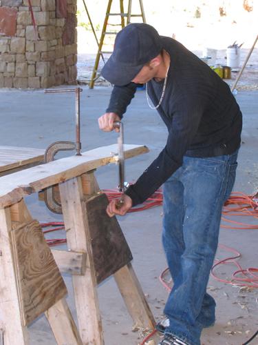 JACOB IS HAND SHAPING SOME ROUGH SAWN LUMBER FOR BASE BOARDS