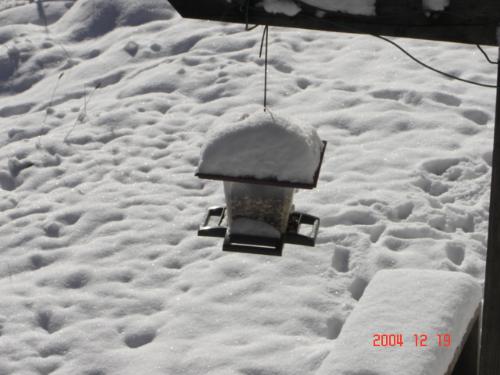 Bird feeder and snow.