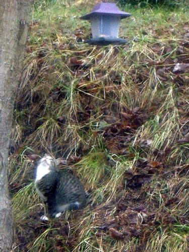 Precious looking for a New Year's Day Meal. I think we may have to move the feeder. LOL
