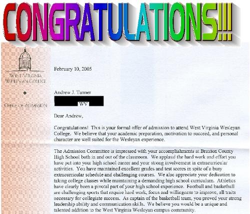 Andrew's admission letter.