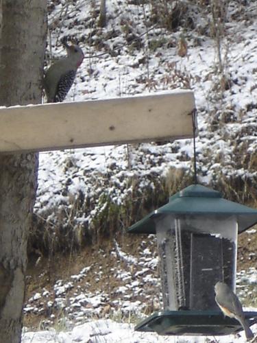 My new birdfeeder with a woodpecker and ???