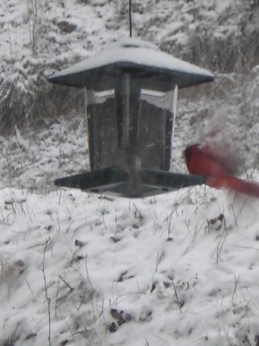 The Cardinals like the new feeder and sunflower seeds.