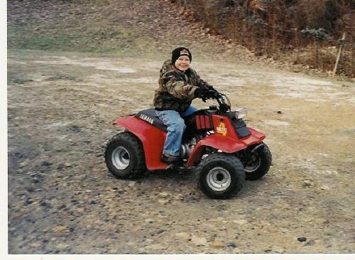 My little buddy, Zach, enjoying a ride on his fourwheeler.