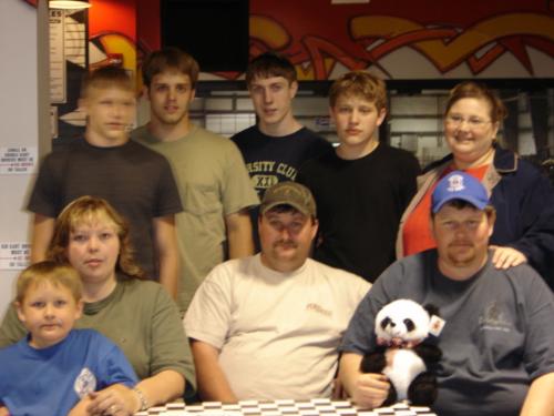 MY FRIEND Kelly( new member Zach's mom), her husband Scott, and our little buddy Zach, and our family at trip to the go-kart track. ooopppsss forgot our friend Shane(Glen was in Russia) |