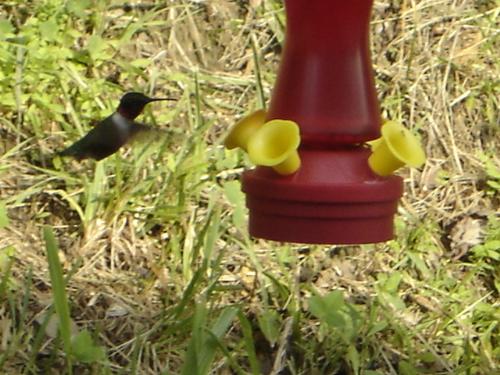 Kevin bought me a hummingbird feeder and Oriole feeder for my birthday (in August). It paid off this morning.