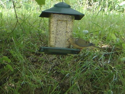 A rare shot. The Doves usually feed off of what the other birds throw out.