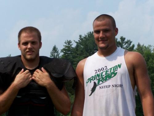 Drew and Rusty Coeburn (his football camp roommate) after their inner squad scrimmage.