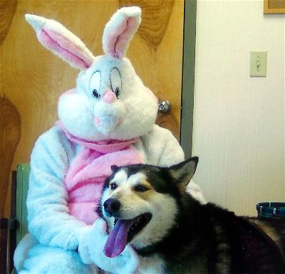 Razz with the Easter Bunny at our Animal Shelter Fundraiser.