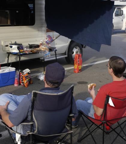 Harry and Adam's body language reflects their lack of amusement during the ugly second half of the Buckeyes versus Wisconsin tailgate Saturday.