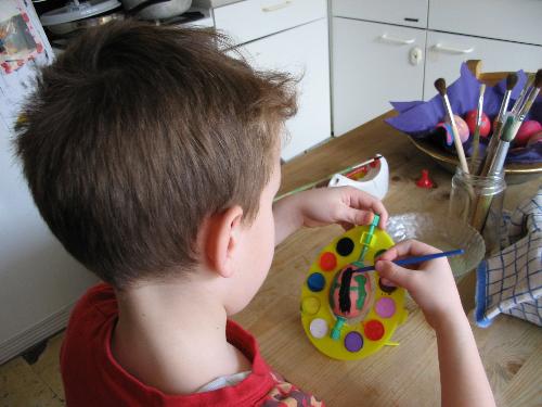 26.03.2005 " Eloy is zeer geconcentreer bezig...wel handig zo'n houdertje... " " Eloy very bussy..." " Eloy concentradísimo en su trabajo...{los colores son comestibles } " Amsterdam, Nederland