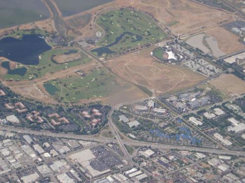 flying into SFO Tuesday; that's Shoreline Amphitheater to the right (white blob) - I'm not a huge fan of flying, so it never occured to me to photograph the landing...before fotoamigo!