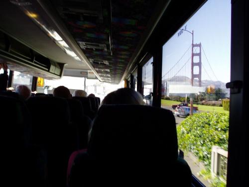 Approach to the Golden Gate Bridge, going north, from the airport bus
