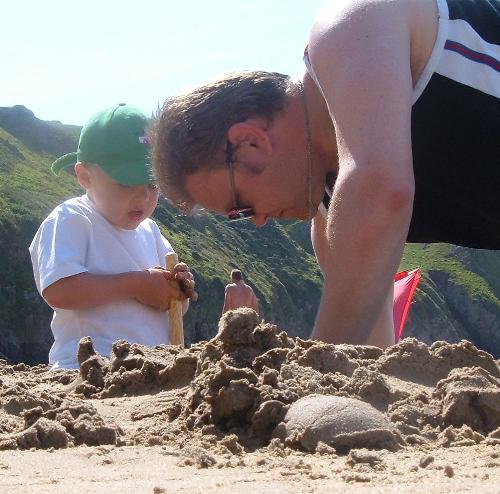 Andrew and Rhys talking to a very little man found on the beach!!!!