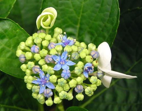 Hydrange blue and white flower buds.