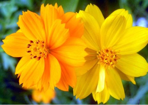 Two colors of the Cosmea flower together.