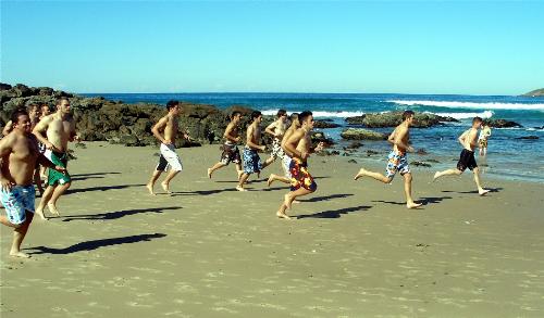 After 50 yds. Arizona State Rugby Union Team on Coffs Harbour Beach. Today.