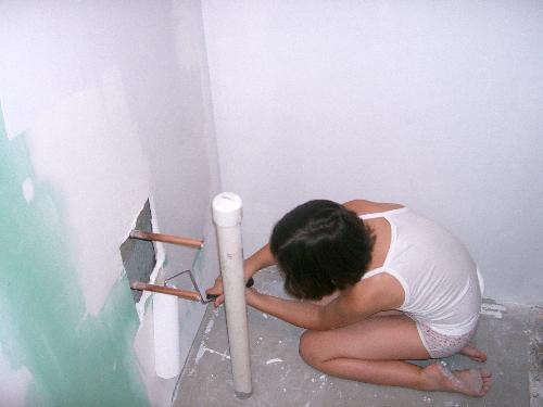 This was Courtney helping us build a new bathroom. It was about 95 degrees which is why she is in her underwear.