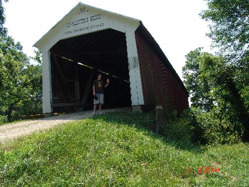 I drove to Parke county Indiana to see the cover bridges. The drive was over a hundred miles from my home. I took route 41 all the way down. I took my grandson and his girl friend along for the ride. We only saw 3 bridges. I later found out there are over twenty bridges around the county. Last April a fire bug who was out of jail for only 8 days for arson burn down a bridge that was built in about 1865. Hope they lock him up for years. I have my cousin from Ohio to thank for this long drive. I hope to go back in October when the trees change and it is cooler. Beautiful country we have. The following pictures are from this trip. I have a map I got from a very nice man of the bridges in the area. It was late in the day so we headed for home. If I can I will copy the map and post it. |