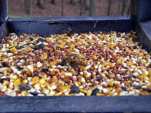 eating corn from the feeder.