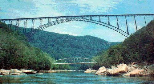 New River gorge bridge. 876' high. 3030' long.