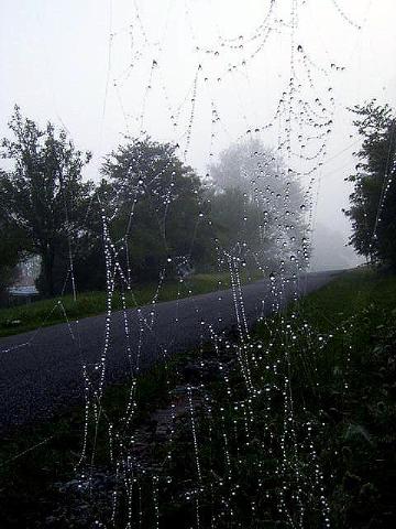 Dew drops on spider web.