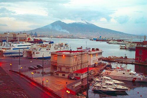 Military dock and Mt. Vesuvious covered with snow :-(