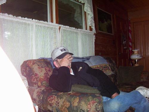 Roger's here this morning. I fixed breakfast (fried potatoes, eggs, bacon and biscuits) and now him and David are outside doing target practice with David's new gun.