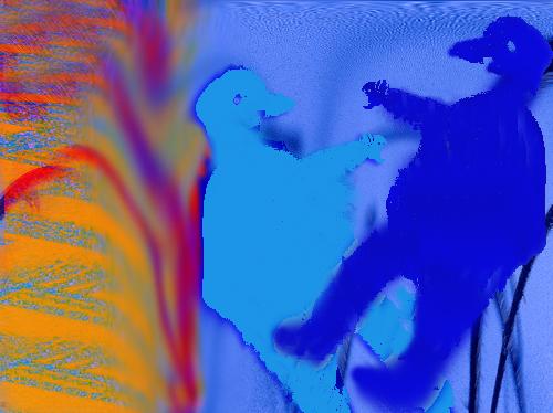 DuckBoy Episode #5 Wasn't I Here Already? DuckBoy has been wandering for what seems like days. He goes round and round and round seeming to meet himself as pale reflection.The sign he saw gets closer and further...he skirts the grid many times,avoiding it and its dangers and boredom. He enters foggier areas and clearings. The sign may say "lost?", "loop", "PT Barnum lived here"...strange voices say "no exit' or "no exert"..are there others in here..he seems to have passed a dog rolling in snow..snow? It's Summer,last he knew...but seasons come and go in here...there was a slit of sunlight so strong he closed his eyes..oh,maybe that's when he ended up near the grid again...he thinks of her and her warm enticing feathers,her wings that enfolded...he must go on,he must avoid those weeds..probably tick infested... Oh wait, there's the sign..what's it say? It's like New Jersey,he screams inwardly,the sign is obscured! |